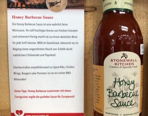 Neben den Stonewall-Saucen haben wir aber natürlich auch noch andere leckere Saucen, Ketchups und Grill-Gewürze für euch gefunden… Und das beste - die meisten davon könnt ihr im Laden selbstverständlich erst probieren… Aber Vorsicht, wir übernehmen keine Garantie dafür, dass ihr danach vor lauter Vorfreude sofort zum Grillen nach Hause müsst!!!